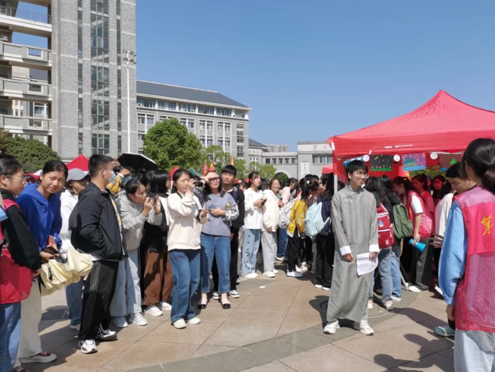 在展览期间,我院推出了一系列优秀节目吸引广大师生前来观看,如朗诵节目《青春中国》、情景剧《何叔衡》、合唱节目《明天会更好》等。其中情景剧《何叔衡》是我院在宁乡市黄材镇的三下乡社会实践过程中的原创作品,向我们展示了革命烈士何叔衡“三十七岁仍立志求学,”参与“中共一大召开”等一系列革命活动,该剧集思想性、艺术性、观赏性和现实教育性于一体,弘扬了我校杰出校友何叔衡先生有志不在年高、求学进取、敢于斗争、以身为党的精神。展览过程中,志愿者们耐心讲解与同学们认真聆听的画面形成一道亲切靓丽的风景线;“你画我猜”、“正话反说”等游戏为成果展增添了无限乐趣,盛况空前。22思政1班胡芬同学在现场表示:“我院三下乡成果展示不仅活动形式生动有趣,展示内容也全面深刻,它激励着我们要在积极投入为社会服务的实践中增强个人本领,奋进成为能够担当民族复兴大任的时代新人!”我院三下乡活动工作人员蒋林桃说:“作为一名三下乡成果展示活动的工作人员,身处其中,我深刻地感受到同学们在参与游戏时发自心底的最纯真的快乐。看到参与三下乡活动的学长学姐们与小朋友们的相片与录像时,我对教育事业的尊敬与向往油然而生。”