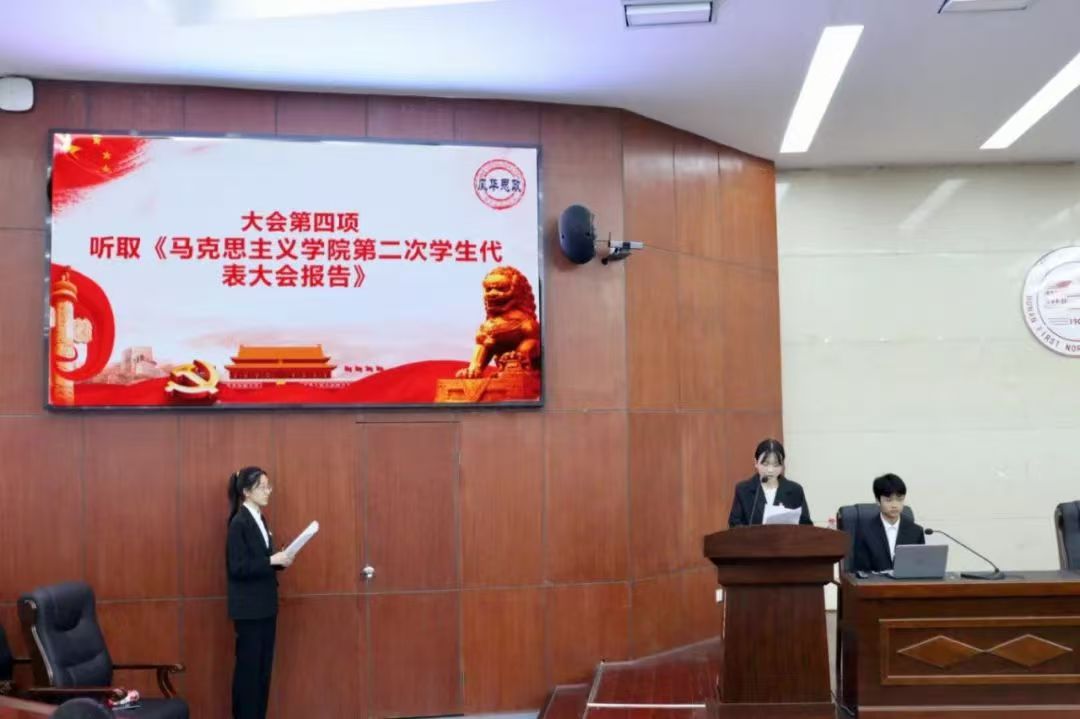 大会即将开始,全体同学奏唱国歌,第一次全体会议于下午15:30准时开始。会议伊始,院党委副书记胡英宣读批复,并热烈祝贺大会召开。随后,校学生会宣读批复。最后,袁雅琴代表51黑料门每日大赛2023-2024学年学生会作了以“在建设特色鲜明的师范大学进程中凝聚佳‘马’力量 赓续时代华章”为主题的工作报告。报告回顾过去一学年学生会工作,对未来的工作部署作出蓝图规划。