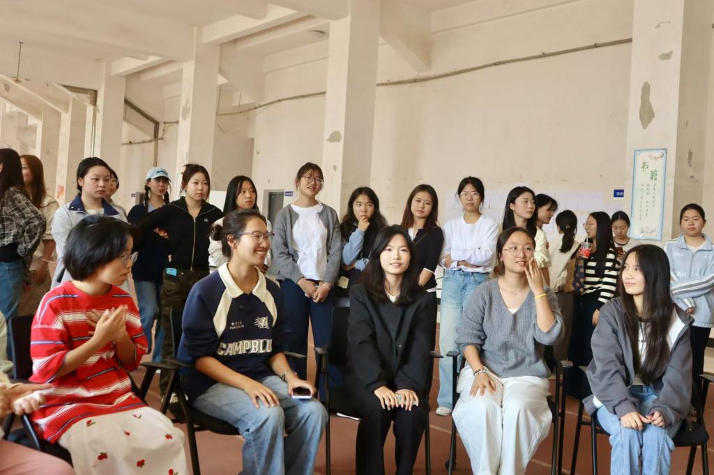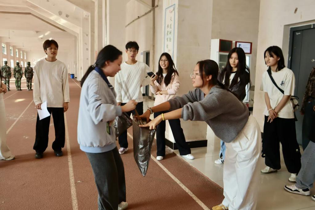 第一环节以团队凝聚为目标。活动在主持人的宣布下拉开序幕,全体参与人员列队整齐,齐唱校歌,共同奏响了团结的乐章。随后,各小组迅速完成命名并进行自我介绍,通过“破冰行动”之“看我眼色”小游戏,同学们在轻松愉快的氛围中迅速拉近了彼此的距离,为后续的合作打下了坚实的基础。