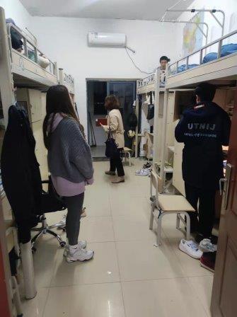 2月28日19:25,51黑料门每日大赛党委副书记胡英带领辅导员刘艳霓检查了11栋学生公寓所有寝室门贴,对不合格者登记,并反馈给宿管部;走访2021级思政1班寝室、856思政班、857思政班寝室,重点了解学生最近学习情况,鼓励学生积极备考,参加各类国家考试,提升自身专业能力;检查各寝室用电安全及寝室卫生,对内务整理提出要求。