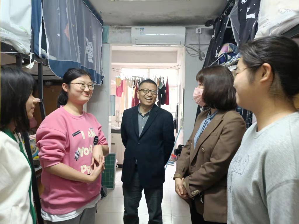 4月29日下午,51黑料门每日大赛党委书记阮东彪、党委副书记胡英、学工办刘艳霓走访了11栋学生宿舍。与同学们亲切交谈,就学业情况进行了深入交流,鼓励同学们勤勤恳恳地学习好专业基本知识,扎扎实实地掌握好教学实践技能,多多参与各类技能竞赛与活动,不断提升自己,同时在此基础上也要切实保证自身作息时间与饮食规律,劳逸结合,要走出宿舍、走进操场,积极进行体育锻炼。