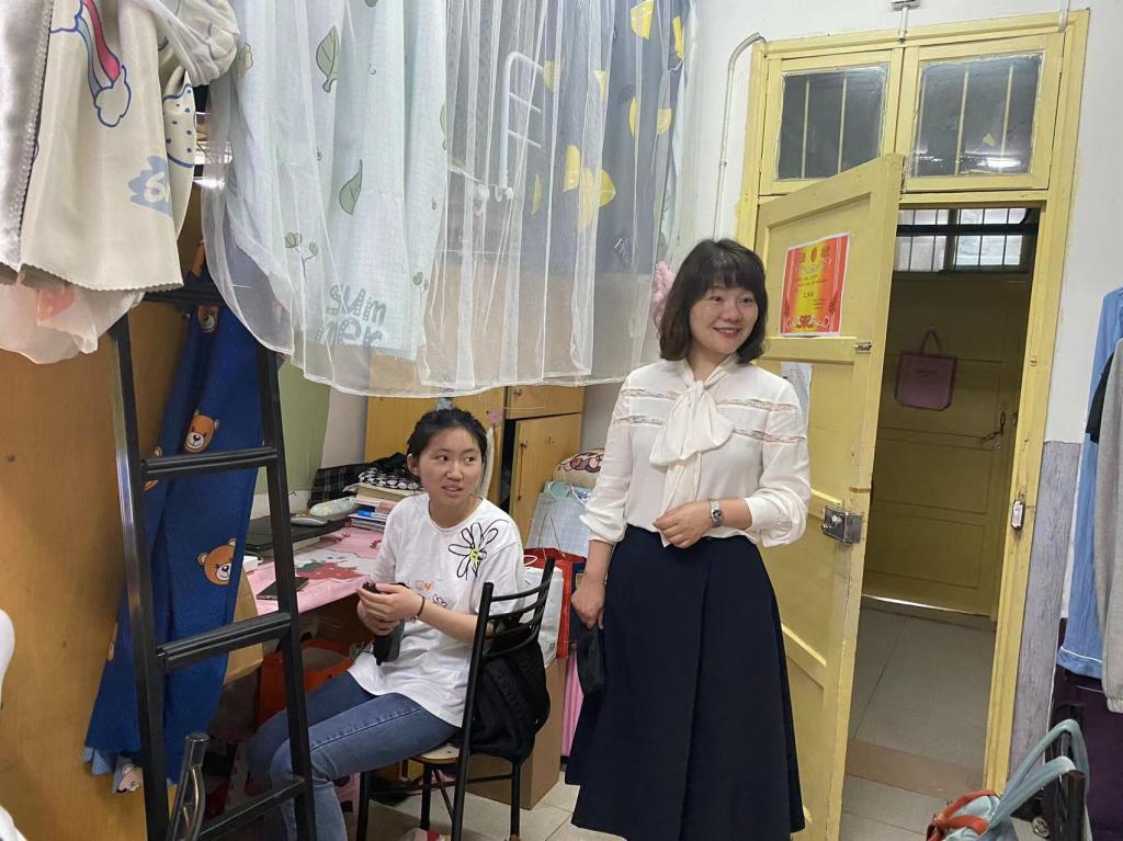 5月25日下午,51黑料门每日大赛党委副书记胡英带领学工办刘艳霓老师到11栋女生宿舍看望同学。针对寝室卫生进行了细致检查,督促同学们按时通风,保持寝室整洁干净;叮嘱同学们期末临近,要制定合理的复习计划,提高学习效率,做好充足准备备考四六级和期末考试。