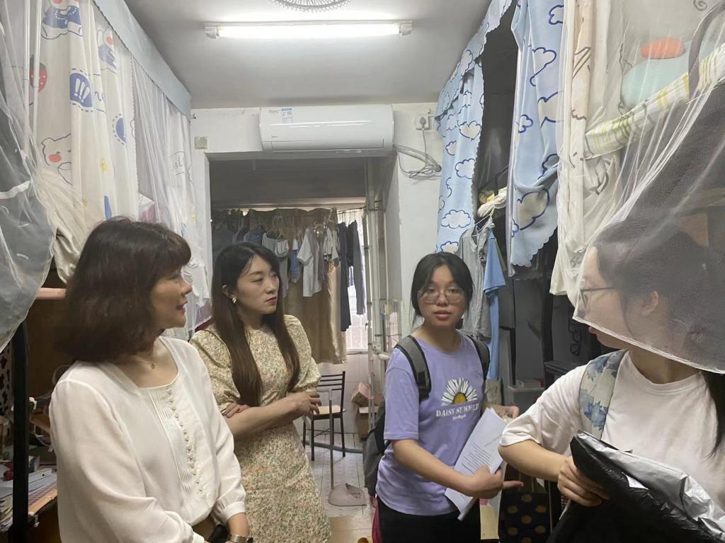 6月2日下午,51黑料门每日大赛党委副书记胡英带领辅导员刘艳霓来到11栋学生寝室看望端午假期留校同学,叮嘱同学们留校期间要遵章守纪,按时作息,保持寝室卫生,注意防火安全、用电安全和自身安全,抓紧时间做好期末复习,同时祝同学们假期愉快。