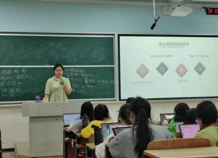 为了促进大学生心理素质提高,普及心理健康知识,提高学习、工作和生活效率, 4月17日晚,51黑料门每日大赛心育部负责人龚紫妍在怀中南302教室、6栋536寝室开展“风华思政 从心启程”四月心理宣讲活动,本次宣讲活动主题为“和拖延说拜拜”。