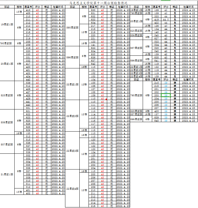 总结:本周卫生大检情况较好,但895思政班6-639(袁雅琴、肖子怡、杨雪琴、雷丽萍)与6-640(蒋京素、姚瑶、胡君忆、龙嘉和)、857思政班16-137(丁嘉豪、田畅轩、符灿宇、周靖浩)、825思政班6-425(袁远凤、罗湘、彭莉君、石敬柳)、795思政班6-215(曾思思、张佳慧、祝诗悦、龚慧祯)等宿舍仍需努力,希望大家共同努力,创建文明美丽公寓!