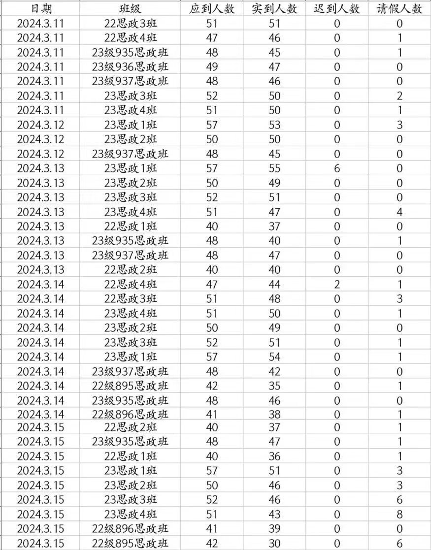 马院第三周晚自习检查情况