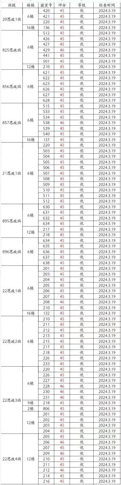 马院第四周公寓检查情况