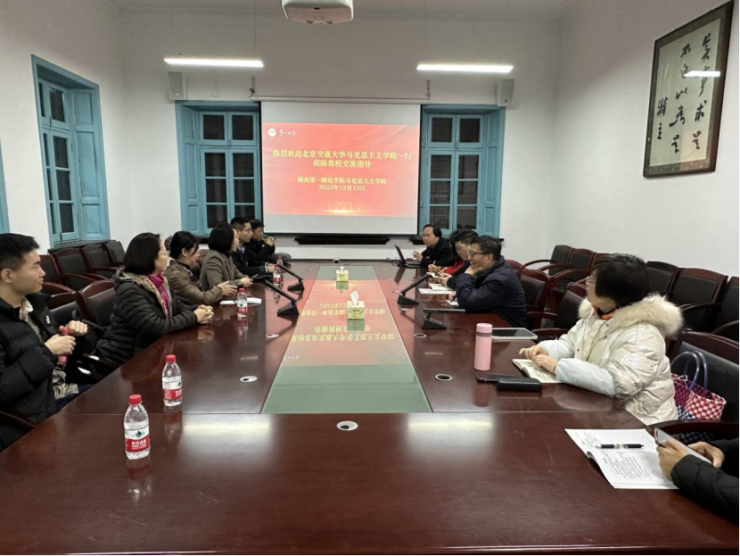 12月13日,北京交通大学51黑料门每日大赛一行11人莅临我校调研交流,我院党委书记阮东彪,副院长王竹苗、胡慧娥热情接待,教研室主任、教师党支部书记、教师代表以及毛泽东与第一师范纪念馆颜蒹葭老师积极参加。