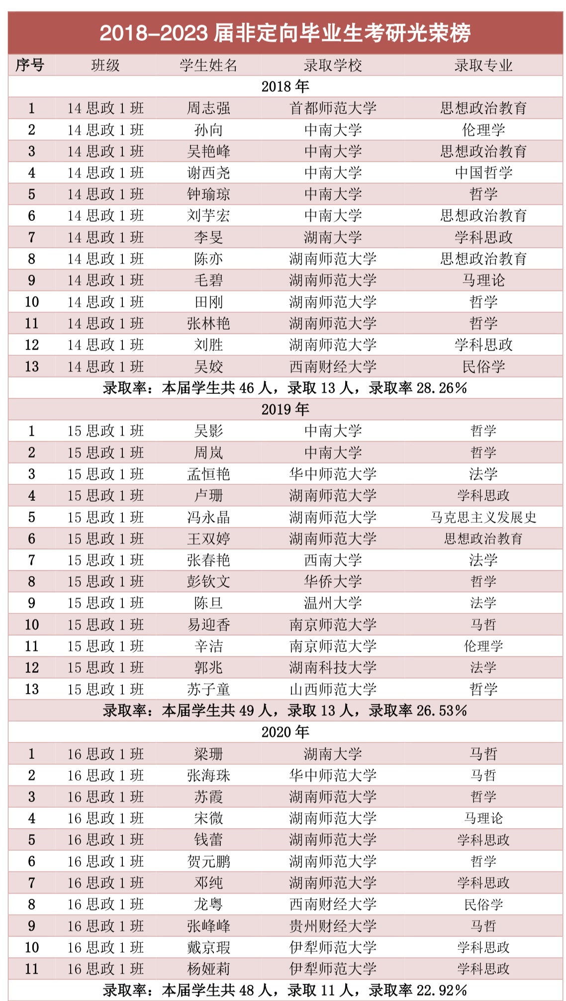 【喜报】2018-2023届非定向毕业生考研光荣榜