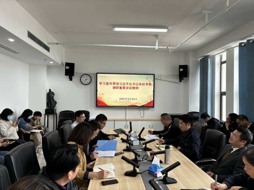 2024年3月24日,我院在百熙楼1010会议室召开全院教师大会,集中学习宣传习近平总书记在我校考察调研时发表的重要讲话精神。会议由我院党委书记阮东彪主持,全体教师和研究生参会。