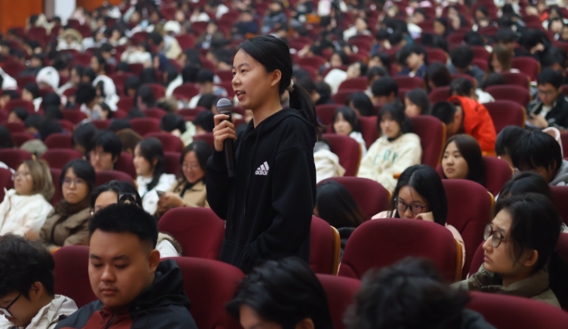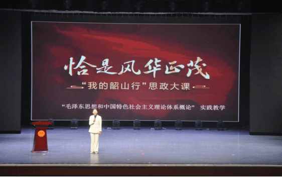 12月11日晚,学校田汉大剧院内气氛热烈非凡,一场聚焦《毛泽东思想和中国特色社会主义理论体系概论》(以下简称“毛概课”)实践教学的特色活动——“赓续红色血脉、培育时代新人”大思政课讲座在此盛大举行。本学期修读毛概课的1000余名学生亲临现场参与,其他3000余同学则通过观看视频录播的方式同步学习。毛概课教研室全体老师悉数到场,副院长王竹苗也亲临现场观摩指导,讲座由毛概课教研室主任匡艳主持。
