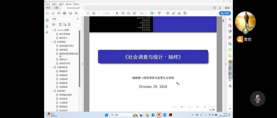 磨课过程中,曾欢老师就社会调查中PPS抽样的原理,抽样操作进行了详细而深入的探讨,同时过渡到抽样中的样本规模问题,对样本规模的确定和计算进行了实践案例分析,层层递进,逐一对抽样的内容进行了课程内容的介绍与分享。